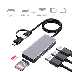 USB3.0 + Type C to 3-port USB3.0 HUB reader